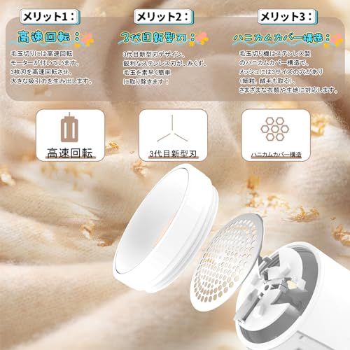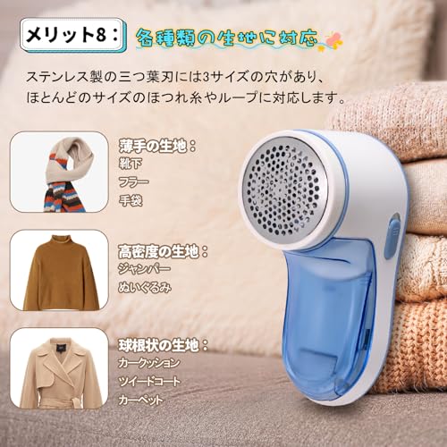 3代目新型刃デザイン、鋭利なステンレス刃が、糸くず、毛玉を素早く簡単に取り除きます!