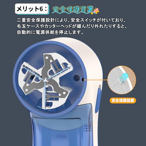 保護設計により、スイッチが付いており、毛玉ケースやカッターヘッドが緩んだり外れたりすると、自動的に電源供給を停止します。