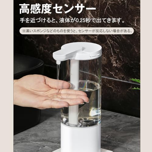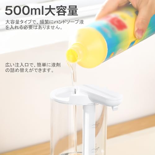 ソープディスペンサー 自動 液体 ハンドソープディスペンサー 雰囲気灯付き オートディスペンサー 非接触式 吐出量2段階調節 500ml大容量 オートセンサー ノータッチ 自動手洗い 電池式 防水 食器用洗剤用 母の日 ギフト