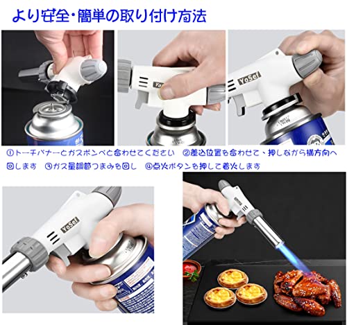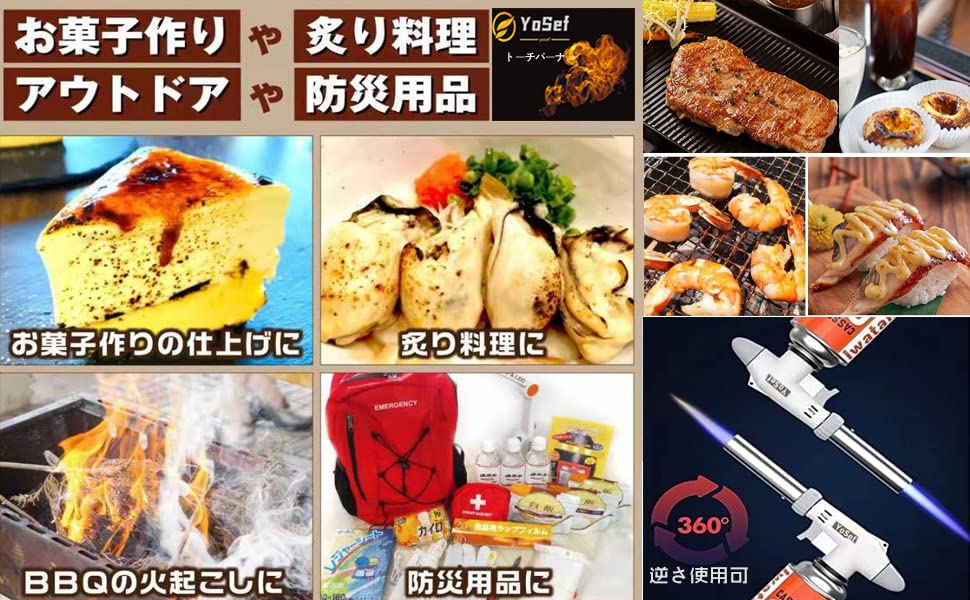 多の用途バーベーキューの炭火起こしやお料理の焼き目付けにも、DIY作業でのロウ付け溶接にも。ケーキのスピットファイアの表面、ベーキング処理 チーズケーキ、バーベキュー、炙り料理 、ロウ付、塩ビパイブ曲げ、グラタンの焦げ目付、凍結解氷、アウトドア料理、着火、豚足/豚の頭の処理。