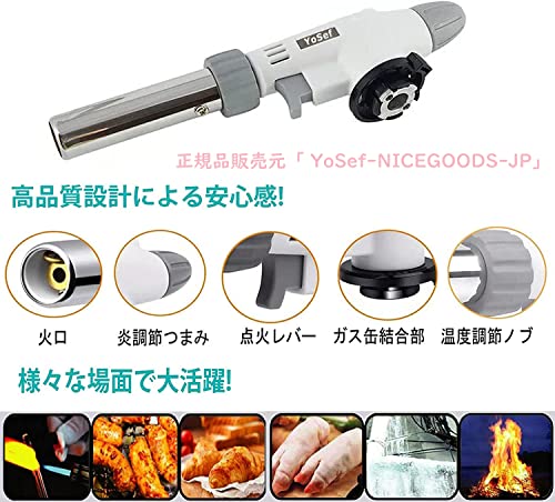 炙り料理/バーベキュー/ガスボンベ/カセットガス//高温/バーナー/トーチ/ボンベ/解凍/解氷/お料理の焼き目付け/DIY作業/ロウ付け溶接簡単着火/高火力1300℃/屋外使用OK!