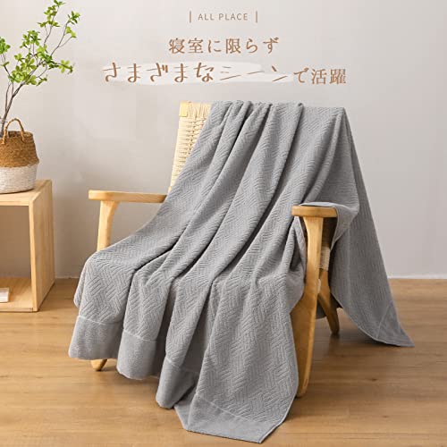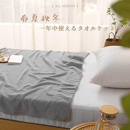 SE タオルケット ダブル ブランケット 綿100% 柔らかい ふんわり 吸湿速乾 抗菌防臭 洗える オールシーズン 180cmx200cm グレー 「SE Softexly」