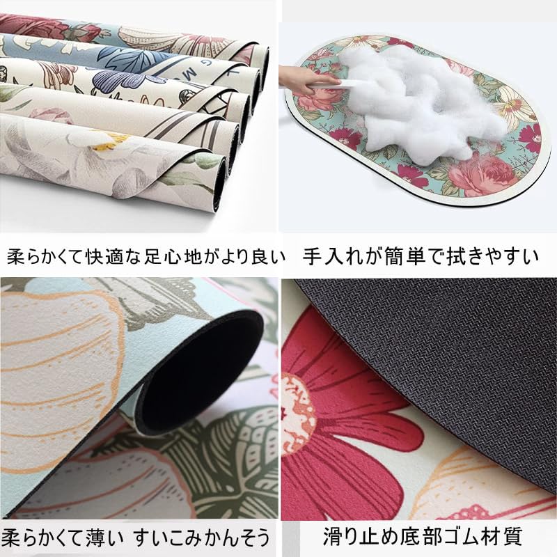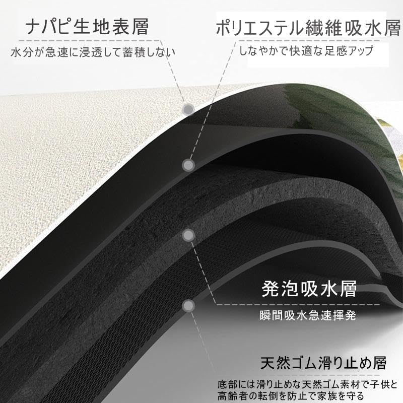 超極細繊維PU透水層は通気性が良く、表面の水分が急速に蒸発し、いつもサラッと快適な使い心地!速乾性に優れているの。。浴室、脱衣所、洗面所、キッチンや玄関などの場所で安心使用できます。