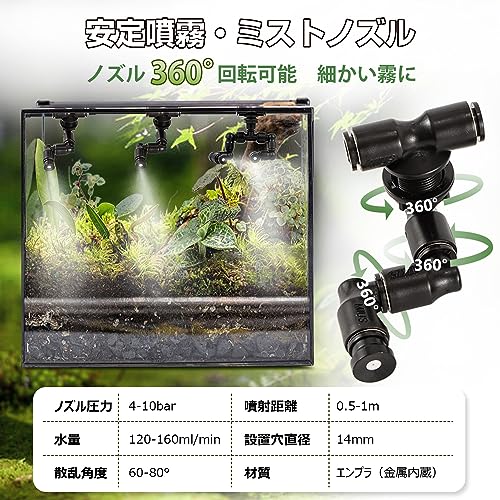 Moongiantgo 爬虫類加湿器 タイマー付き ミスティングシステム 自動噴霧器 爬虫類/苔類/植物用加湿器 ミスト発生器 細かい霧 自動噴霧 ケージ湿度維持に ミスト発生器 噴霧ポンプ フォグマシン 自動霧吹き装置 爬虫類・両生類飼育