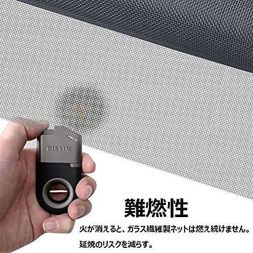 グラスファイバーをポリ塩化ビニルでコーティングした網です。タバコの火でも穴が開くことがないくらい、難燃性・耐久性に優れています。出入り口に設置すると自然の風を通し、結露やカビも防止でき、虫よけはもちろん、夏の湿気対策としても有効です。