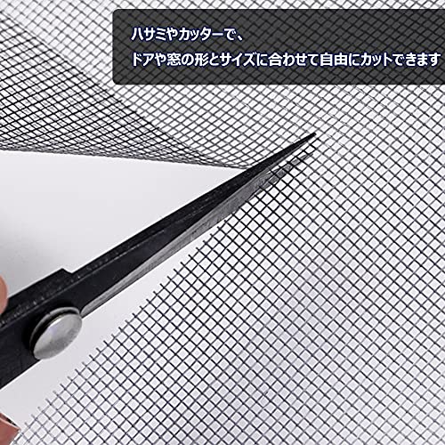 材質:グラスファイバー、色:グレー、網目:18*16メッシュ、重さ:約340g、サイズ:幅122cm×長さ252cm、ハサミやカッターで、ドアや窓の形とサイズに合わせて自由にカットできます。
