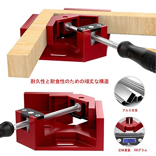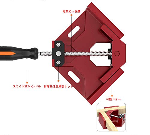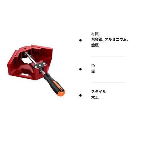 カラー名:赤 特徴 •このクランプのボディ部分は、耐久性と強度に優れたアルミダイカスト合金を使用しています。 •滑り止めラバーハンドルは、長時間持ち運びに適しています。 •さまざまなニーズに合わせて自由に角度を調整できます。 •木工、フォトフレーミング、溶接、水槽、ダボなどにです。 •90度のジョイントとフレームワークを固定するのに正確で理想的です。 仕様 •本体材質:アルミ合金 •ハンドル材質:ゴム •シングルハンドル:調整可能なハンドルジョー回転 •ジョーオープニング:68mm •ジョー幅:95mm •顎の深さ:35 mm •アイテムの重さ:815 g •パッケージ:1 x 90°ライトアングルクランプ