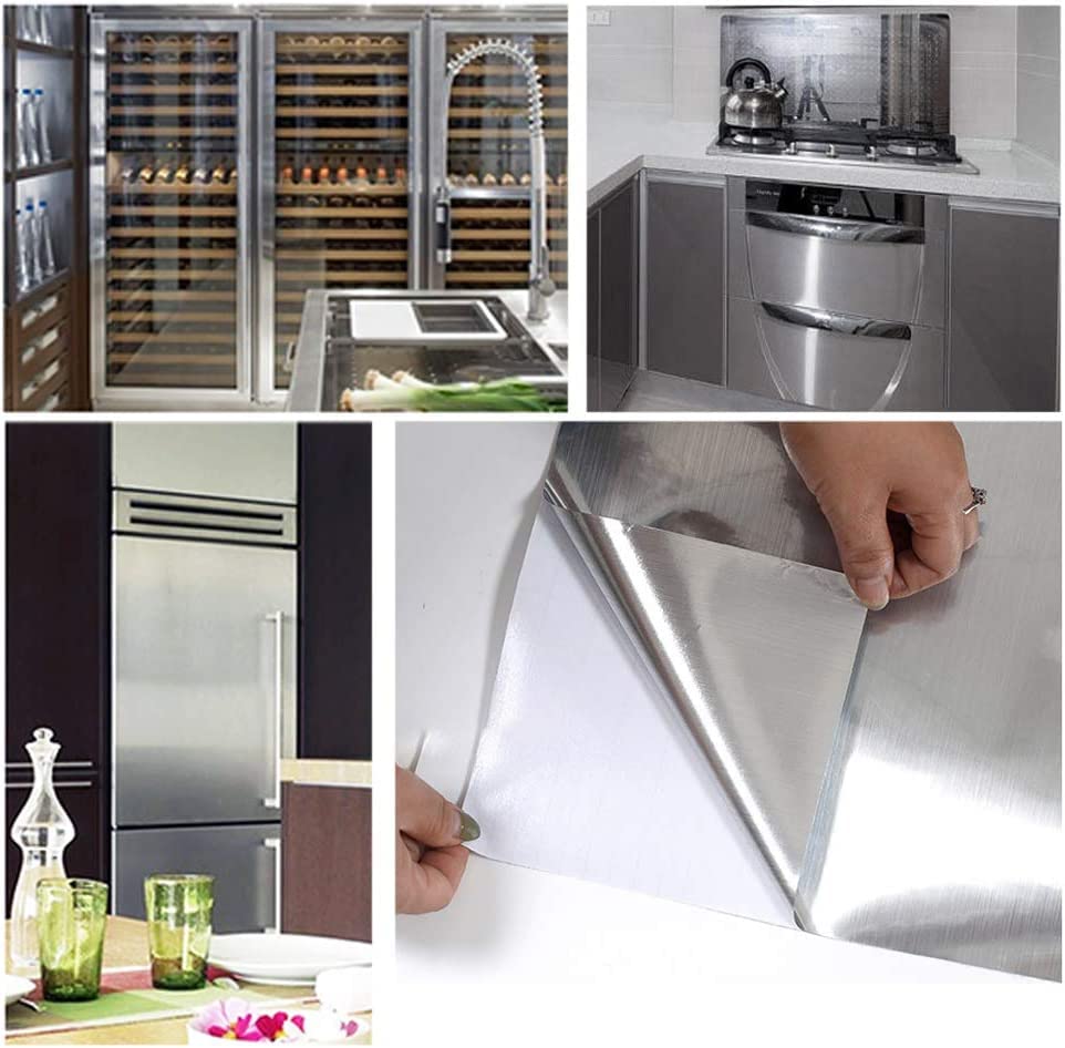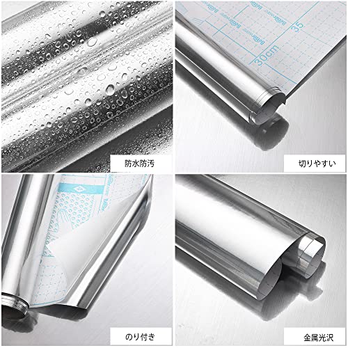 壁紙シール メタリック リメイクシート のり付き 金属 質感 40CM×3M カッティングシート シルバー ステンレス アルミシート はがせる 壁紙 厚手 無地 銀 光沢 模様替え リフォーム ウォールステッカー 防水防油 耐熱 防汚 防カビ DIY 補修 キッチン 台所 冷蔵庫 洗濯機 食器洗い機 賃貸ok 食器棚シート