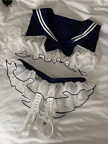 [Yi-gog] セーラー服 コスプレ 透け透け 半袖 へそ出し かわいい セクシー ランジェリー 過激 女高生制服 ミニ ミニスカート コスチューム エロ下着学生服 かわいい シースルー(トップス スカート 蝶ネクタイ Tバック白 黒 )(靴下を含まない )