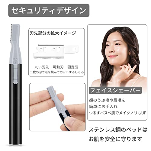 眉毛カッターは二枚の刃があります。一枚は固定刃で二枚目が動作刃です。切れ味は良くて、お肌に直接に触れないです。しっかり毛髪を剃ると同時に、肌に優しいです、無駄な毛をしっかり綺麗にそれて、つるつるになります。
