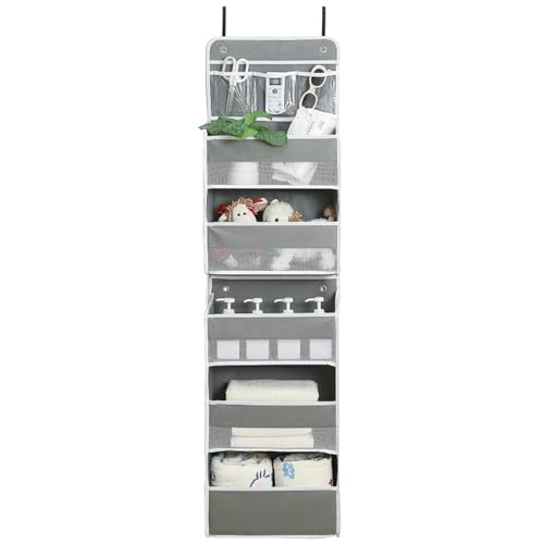 ウォールポケット 吊り下げ収納 分割可能 5段 ドア掛け スイングプルーフ 頑丈 大容量 透明窓付き 耐用 おむつ 雑誌 入浴剤 漫画など タオル 化粧品 おもちゃなどの収納に最適 4xフック付き