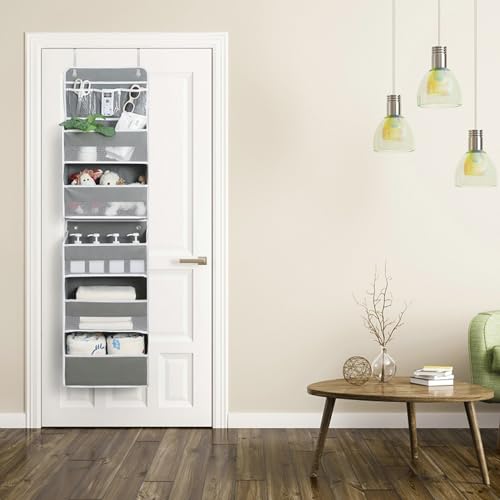 TATIU ウォールポケット 壁掛け収納 6段 分割可能 ドア掛け 収納ポケット 壁掛け 吊り下げ収納ポケット 大容量 不織布 頑丈 メッシュ窓 おむつ タオル 化粧品 おもちゃ リモコン 収納 弾性フック4個付き (グレー)