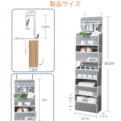 HASONA ウォールポケット 【2024変形防止設計】 4段 ドア掛け 収納ポケット 壁掛け 吊り下げ収納ポケット 頑丈 大容量 不織布 おむつ/タオル/スキンケア用品/ドライヤー/おもちゃなどの収納 フック2個付き (グレー)
