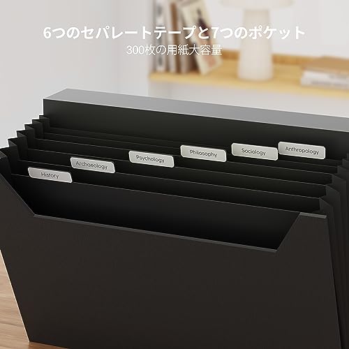 DoocliB ドキュメントファイル a4 7ポケット 持ち運び 拡張ファイルフォルダー ヨコ型 アコーディオンファイル 区分けラベル付き 大容量 ジャバラファイル 書類ケース 分類収納 文房具 学校 事務用品 (ブラック)