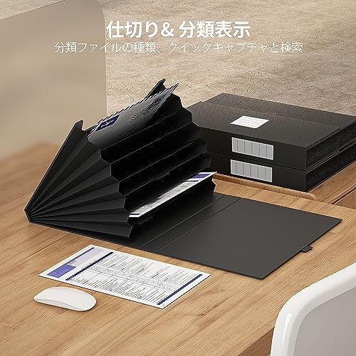 ドキュメントファイル a4 7ポケット 拡張ファイルフォルダー スナップ式 軽量 薄型 分類ファイル 書類収納ボックス 分類ラベル付き 書類管理 分類収納 文房具 学校 事務用品 会議 出張 整理用に 黒