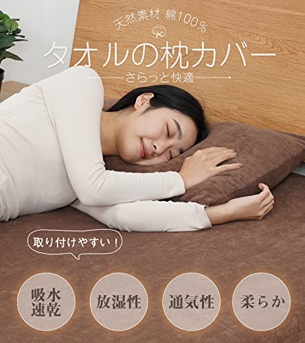 【高級天然綿100%・3D伸縮】 枕カバー タオル地 のびのび 厚手 パイル 35x50cm オールシーズン ピローケース まくらカバー 封筒式 ふわふわ 通気性 抗菌防臭 タオルのようなやさしい肌ざわり