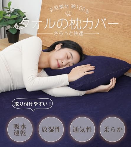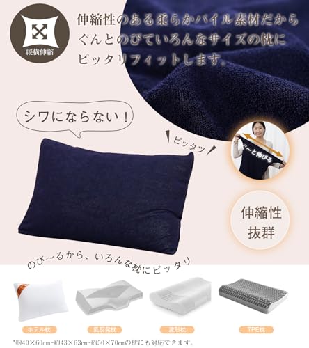 【高級天然綿100%・3D伸縮】 枕カバー タオル地 のびのび 厚手 パイル 43x63cm オールシーズン ピローケース まくらカバー 封筒式 ふわふわ 通気性 抗菌防臭 タオルのようなやさしい肌ざわり