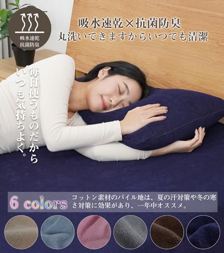 抗菌防臭加工で細菌の増殖を抑制し、防臭効果を発揮します。吸水性が高い枕カバーは寝汗素早く吸収し、サラサラカバーです。