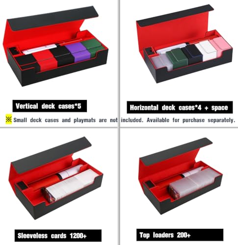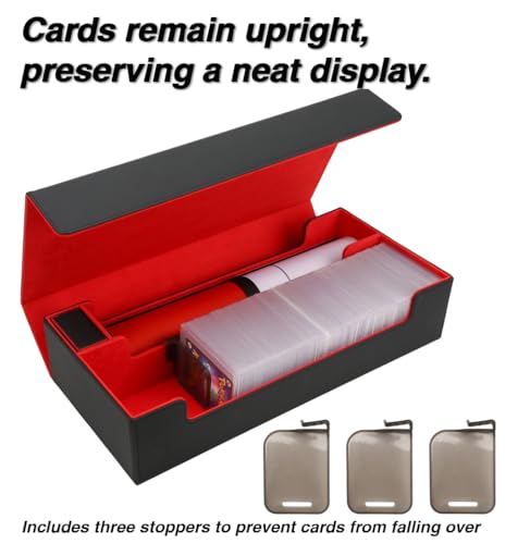 デッキケース トレカケース カードケース プレマ ダメカン 収納ケース トップローダー収納 カードストッパー付き「 遊戯王 ポケカ MTG 各種 カードゲーム に使用可能 」 (黒(内装赤), ストッパー付き)