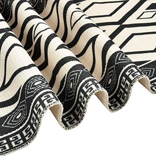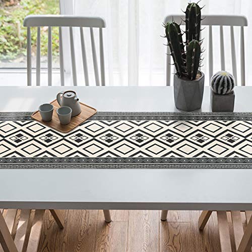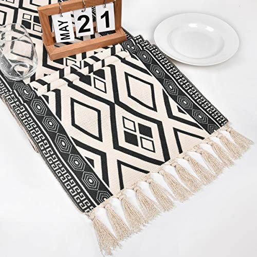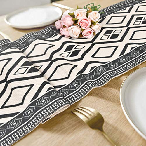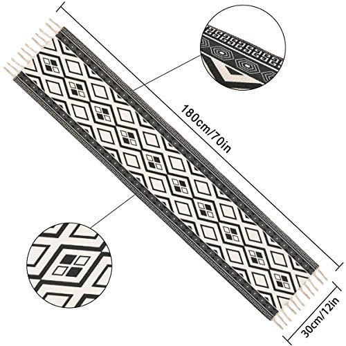 Ikfashoniテーブルランナー 幾何学模様テーブルフラグ おしゃれ食卓ランナー タッセル付き モダンテーブルフラグ テーブルクロス おもてなし 食卓飾り 断熱 清潔しやすい 滑り止め お家用 レストラン用 パーティー上品 黒と白の織りパター 30x180cm