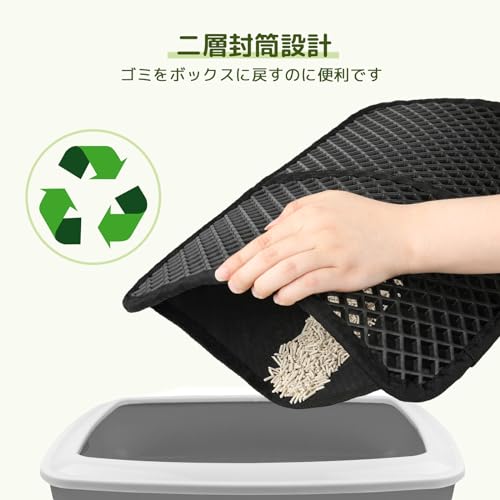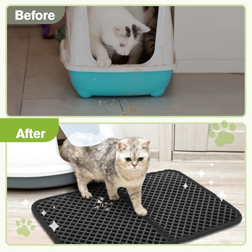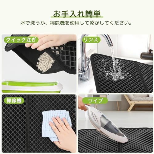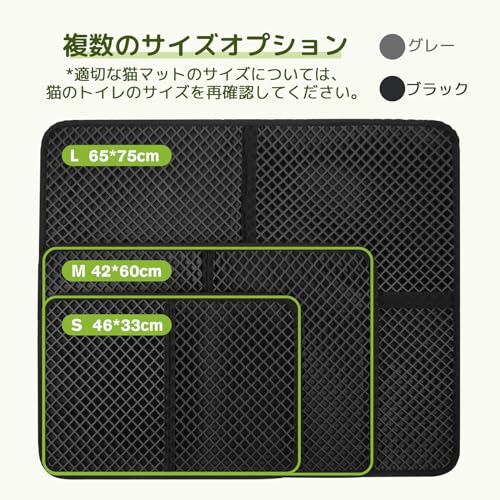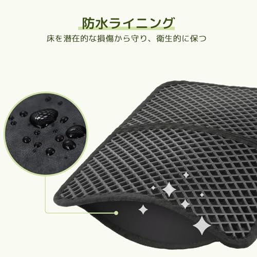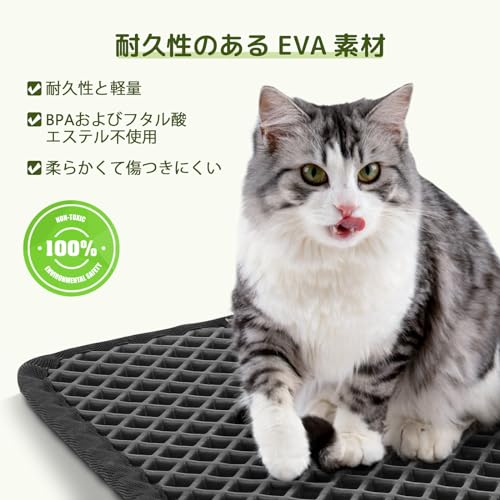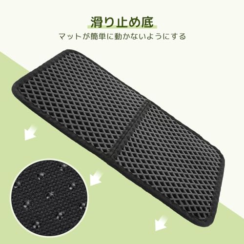 猫用トイレマット 猫砂取りマット 60x45CM 猫砂の飛び散り防止 蜂房の設計 マット 二重構造 砂取りマット 再利用可能 ペットキレイ 洗える 掃除簡単 EVA滑り止め 防水 マッサージ式 高耐久 (ブラック)