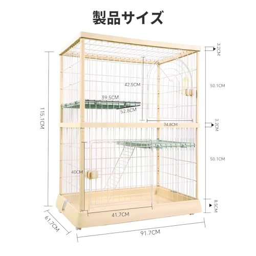 猫ケージ 2段 キャットケージ 幅76*奥行50.5*高さ89cm ペットケージ 脱走防止 組立簡単 (グリーン)