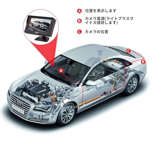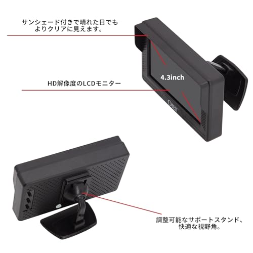 4.3インチサイズで設置場所を選ばず使いやすいモニター ■バックカメラコントロール入力装備 バックカメラの電源配線をバックランプから取り、 カメラ映像配線は本品のカメラ入力に接続で シフト連動で自動でモニターがバック画面に切り替わります。 ■バックカメラ入力に信号が無い時はビデオ入力の画面が写ります。 ■LCD液晶サイズ:9.8CM×4.5CM ■システム方式:NTSC / PAL ■解像度: 480*272 ■使用電源:DC12V【ACが付く場合、100Vも利用できます】 ■信号入力:2チャンネルまで ■作動温度:-15℃~+50℃ ■本体重量:110g ■サイズ:12CM×7.5CM×1.5CM (使用上の注意) モニター本体へ電源供給するだけではモニター画面は真黒のままです。 モニター本体へ電源を供給したのちに映像信号を供給してはじめてモニターに映像が映ります。