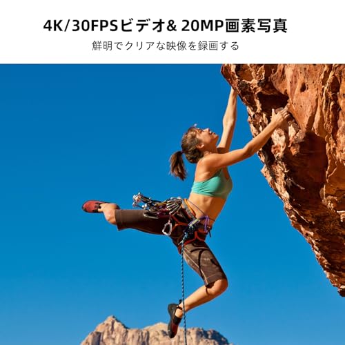 本機防水 / デュアルカラースクリーン / 4K@30FPSビデオ解像度 / 20MP写真画素 / 新版6軸手ブレ補正 / 大容量バッテリー*2 / リモコンコントロール / 調整可能な170°広角/ スローモーションビデオ / 高速モーションビデオ / 歪みキャリブレーション / バースト写真 / タイムラプスフォト / タイムラプスビデオ / 風切り音低減 / オートローライト / 長時間露光 / ホワイトバランス / ループ録画 / 運転モード / 逆さま / サウンドレコード / Micro HDMI / Type-C外部マイク対応