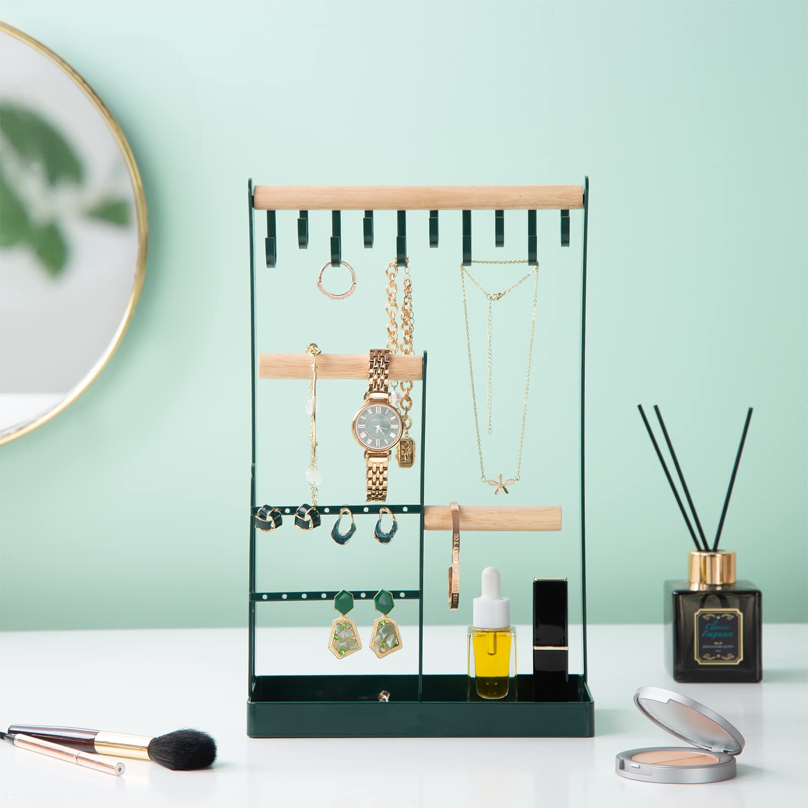 ProCase ジュエリーボックス ジュエリー収納 女性 2層 宝石箱 アクセサリー収納 オーガナイザー 分割と取り外し可能 小物入れ 着脱式の仕切り付き - ミント