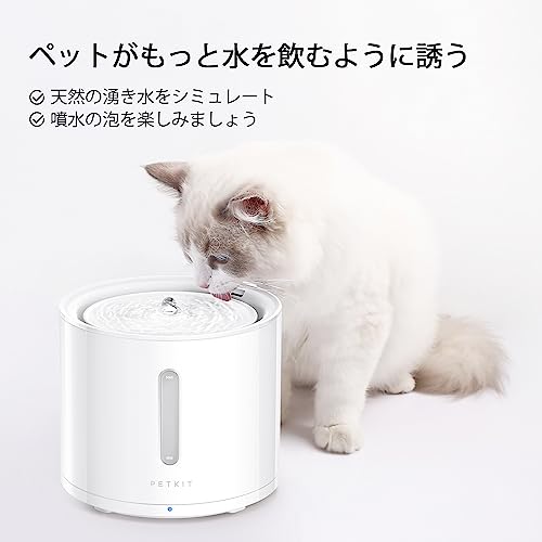 犬猫セラミックペット用水飲み機無線2.31 L大容量4000 mAh充電可能電池自動水飲み機、センサー、運動測定、3種類の給水モード、4つの活性炭フィルター