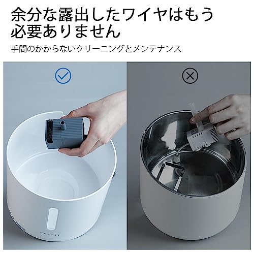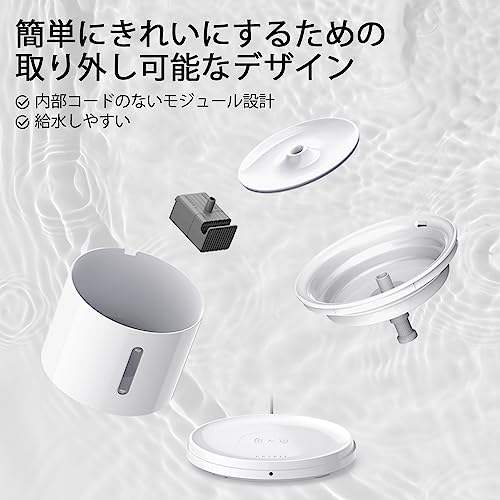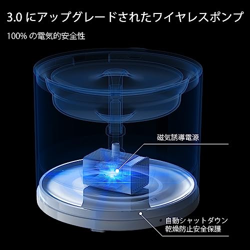 無線充電式 猫 自動給水器 105oz/3L猫 水飲み器 搭載ステンレス製トレイ静音ポンプ ペット 給水器 自動感知で自動給水 長時間使用可能