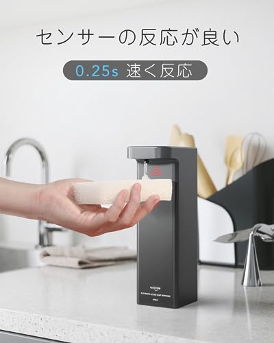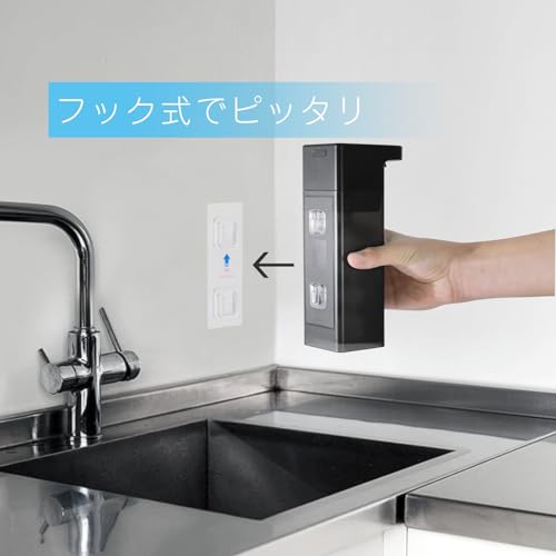 手をかざすと一定量の液体が出て、うっかりで大量のシャンプーやボディーソープを使ってしまう心配もなく、子供から高齢者まで、誰でも簡単に利用できます。無駄のないスリムでスタイリッシュなデザイン、バスやキッチンなどに馴染む。