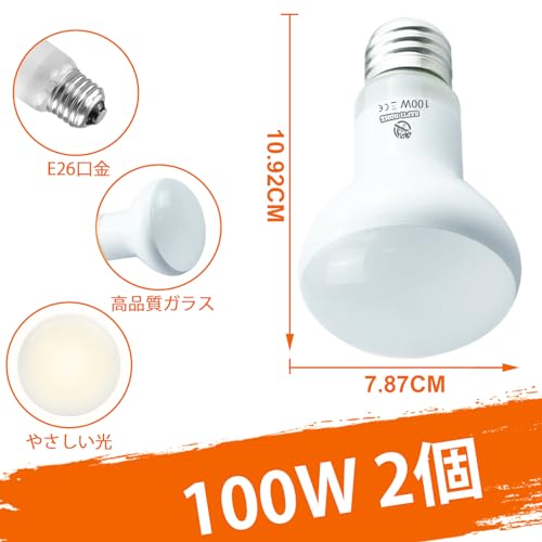REPTI HOME バスキングライト 爬虫類 サングロー 100W 2個 爬虫類 ライト 紫外線ライト 爬虫類 日光模擬 UVA&昼用集光型スポットランプ 爬虫類 保温電球 ヒゲドラゴン、トカゲ、亀等用