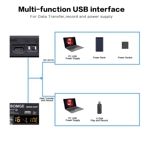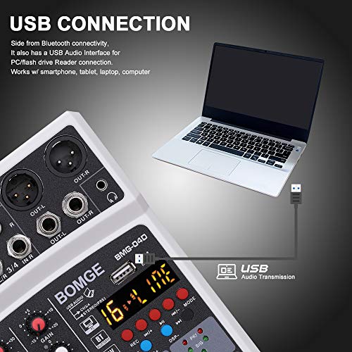 このミキサーオーディオは、外部USB、PCコンピューターまたはラップトップ、フラッシュドライブ、またはBluetoothデバイスで接続して、他のデバイスへのサウンド出力をミキシングおよび録音できます。