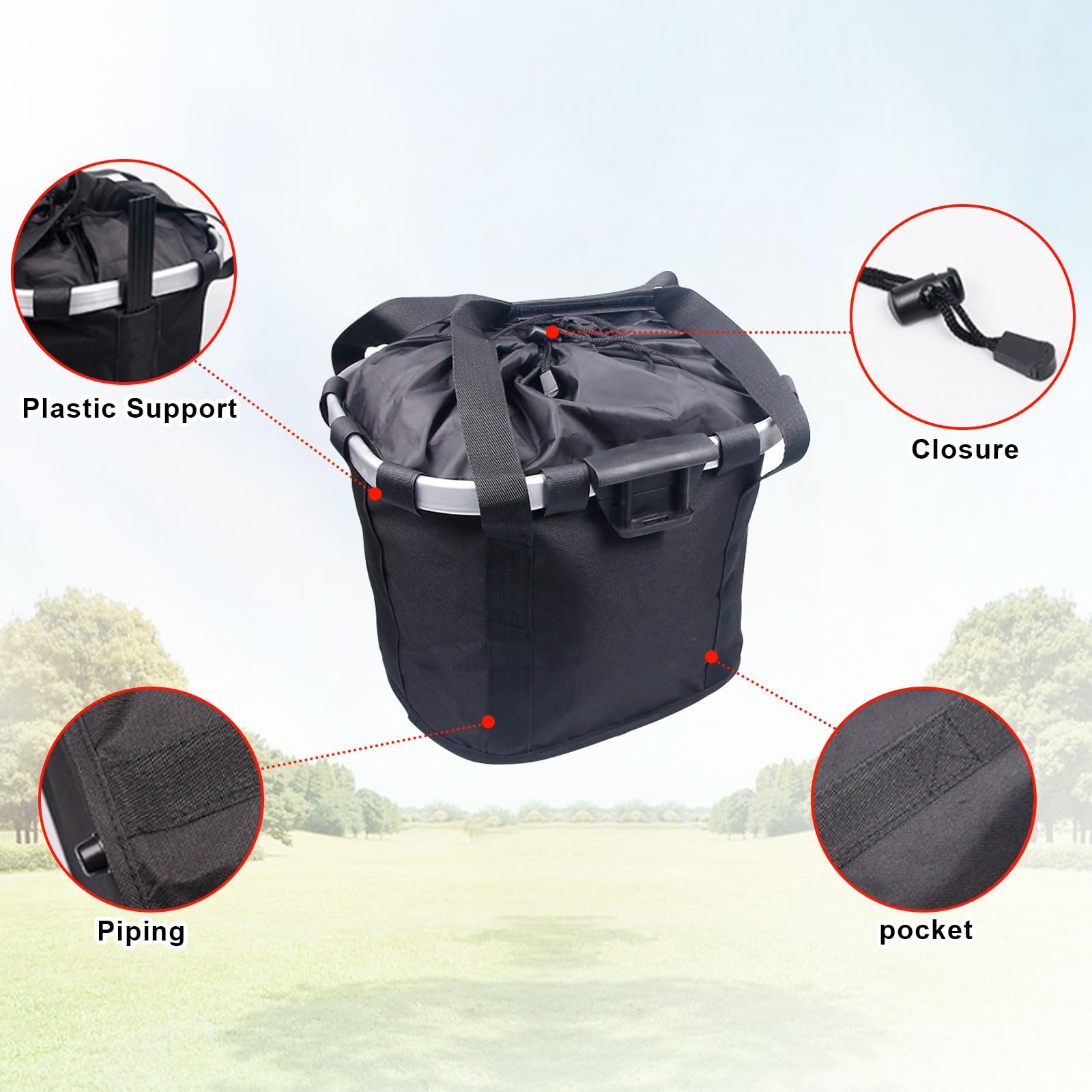 5. 多用途:ハンドルバーからバスケットを取り外した後、パッド入りのハンドルが快適な持ち運び感を提供します。ペットバッグ、買い物バッグ、食料品バッグ、通勤バッグとして理想的で、毎日の市場での買い物でも、自転車通勤でも、私たちの自転車フロントバスケットは手の届くところにあり、あなたの旅をより簡単にします。