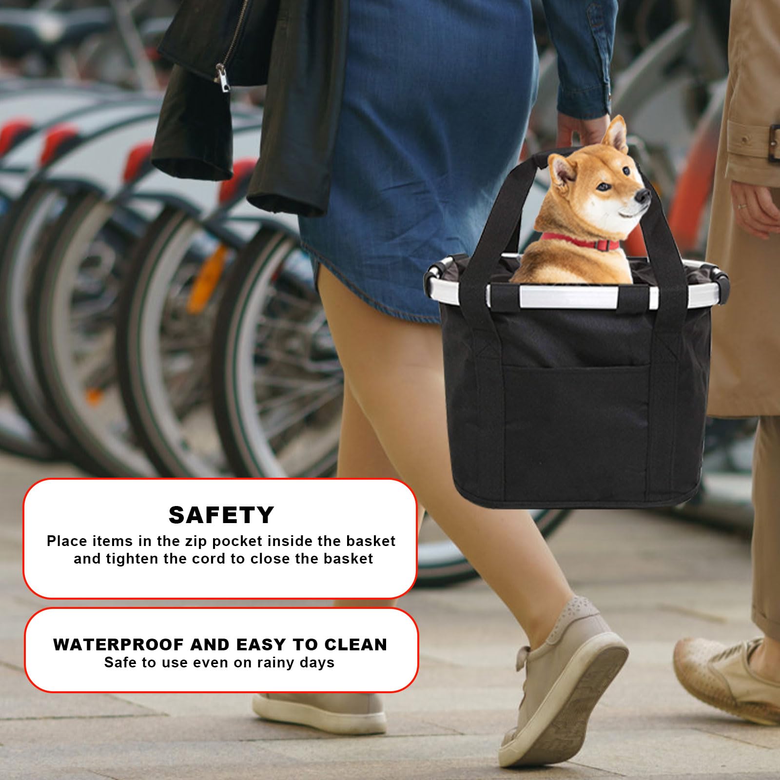 4. お手入れ簡単:この自転車用ドッグバスケットは、雨の日でも安心して使用できます。汚れた場合は、水ですすいで自然乾燥させるだけです。乗っている間に項目を運ぶための理想的。