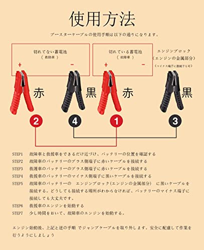 AWELTEC ブースタケーブル 80A 3.5M 12V車対応 軽自動車・コンパクトカー・普通自動車・HV車・ディーゼルカー対応 車起動 エンジン始動 故障車 救援 バッテリー充電 収納バッグ付き 日本語説明付き PL保険付き