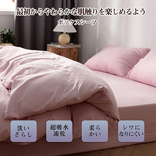 【洗いざらし & 超柔らか肌触り】弊社のボックスシーツ(ベッドカバー)は生地にピーチスキン加工を施しました。きめ細やかな起毛により柔らかくなめらかな風合いはまるで桃の肌に包まれるような肌触りをお楽しみいただけます。また、水洗い加工で自然なやわらかさに仕上げました。普通のピチスキンシーツより柔らかくて、毛玉やほつれができにくく、静電気も少ないため、初めて使った夜もまるで何年も愛用してきたような肌触りでまるで気持ち良い!