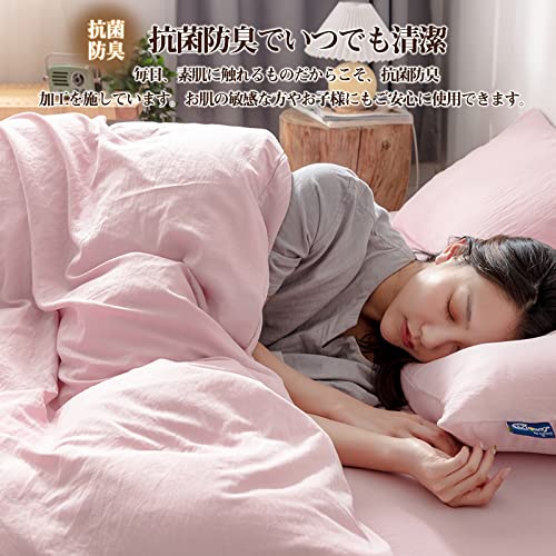 【通気性抜群&オールシーズン使える】水洗い加工で普通のベッドシーツと比べ、優れた吸湿性と通気性で、汗でもベタつかないサラサラ感を保ちます。ムレにくく、春夏秋はサラサラ、冬は暖かくて1年中快適にお休みいただけます。 丁寧に織り上げることにより、耐久性にも優れたしっかりとした生地に仕上がりました。