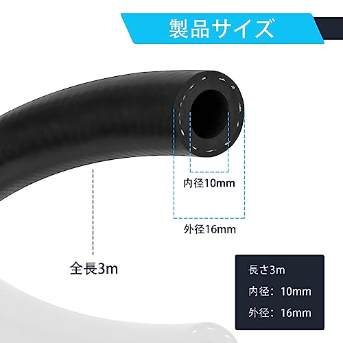 产品名称:橡胶汽油管 特点:耐油性・耐候性・耐水性・耐高压・柔软性・耐久性 规格: 工作压力:290psi(20bar) 破裂压力:1160psi(80bar) 耐热温度:120℃ 尺寸:内径10毫米、外径16毫米、长3米