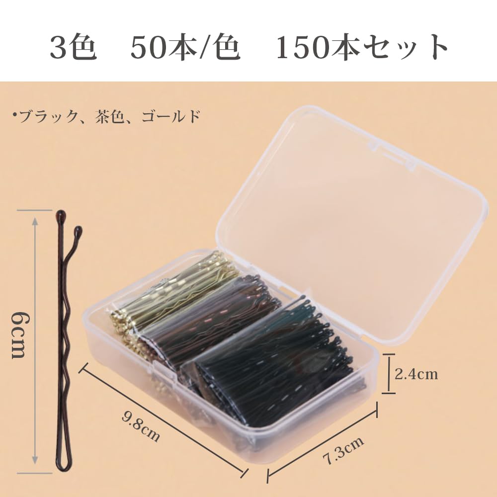 GOORAIFU ヘアピン アメリカピン 玉付き 6cm 3色 150本入 強力アレンジピン 髪をまとめる 扱いやすい