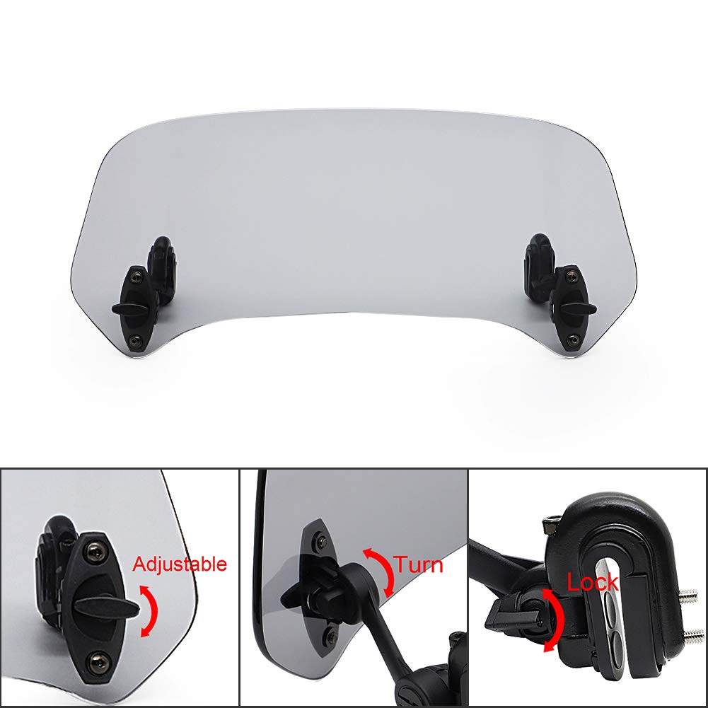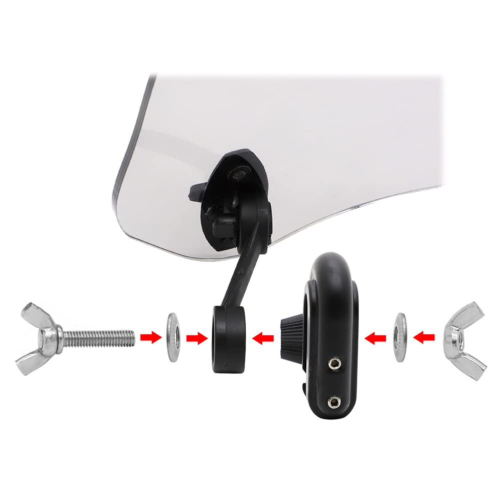 このウインドスクリーンはオリジナルのウインドスクリーンの上に固定された調節可能な物です。ウインドスクリーン付きのほとんどのオートバイに適用します。