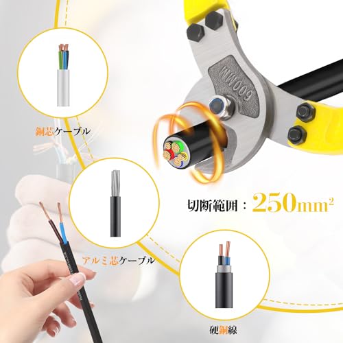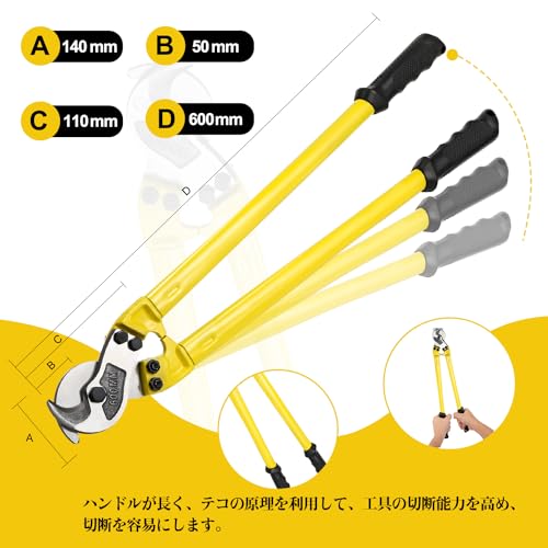 NEWTRY ケーブルハンディカッター ケーブルカッター ワイヤーカッター 両刃式 電線サイズ 100sq-400sq (24インチ)