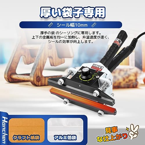 Poafamx クリップシーラー シーラー 手持ち式 300mm シール幅10mm 0-300℃ ストリークシール ヒートシーラー 密封保存 アルミ箔袋、複合袋、クラフト紙などに対応 (300mm/110v)