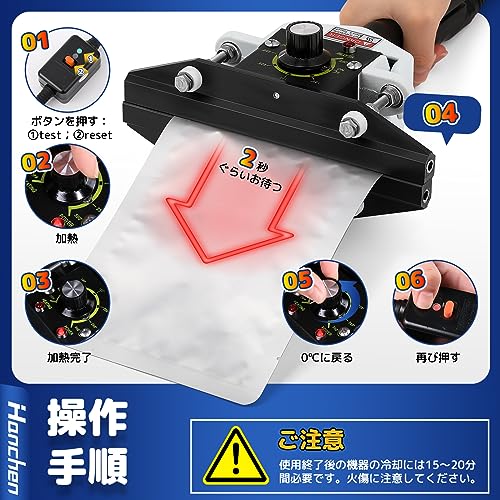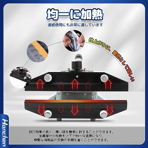 Hanchen 全自動シール機 業務用シーラー 過負荷電流保護 500w 12m/min 高効率 自由調整 シール幅6-10mm シール厚さ0.02-0.8mm 印字ホイール(インクなし) 卓上シーラー アルミホイル/ビニール袋/クラフト紙/複合袋など (110V)