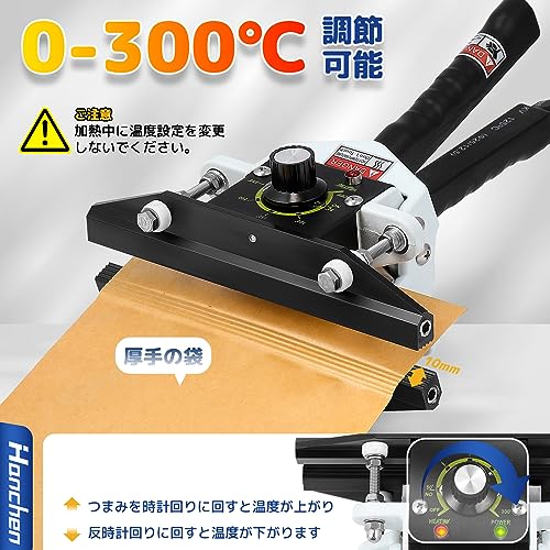 Poafamx クリップシーラー シーラー 手持ち式 400mm シール幅10mm 0-300℃ ストリークシール ヒートシーラー 密封保存 アルミ箔袋、複合袋、クラフト紙などに対応 (400mm/110v)