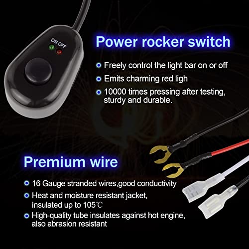 Safego 汎用フォグランプ配線 作業灯配線キット 汎用スイッチ付き リレーハーネス フォグランプリレー LEDグリル取付用配線キット ワイヤーハーネス 表示LED搭載 スイッチ付 12V/ 40A 最大130wまでサポート 【2灯用】
