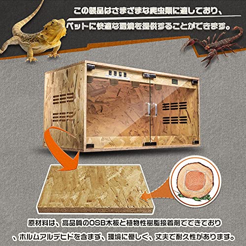 YangAera 爬虫類 ケージ 両生類 ケージ 爬虫類 OSB 60X40X40CM 引き戸 通気性が良いの給餌ボックス トカゲ スパイド カメレオン ヘビ カエル ムカデ ヤモリ ハムスター トトロ ヘッジホッグ 亀 生体 給餌ボックス 木製飼育ケージ グラステラリウム
