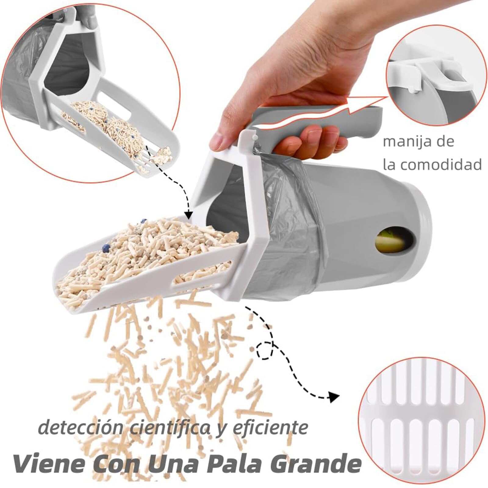 特征采用优质 ABS 材料制成,边缘光滑,重量轻,使用寿命长。底部垃圾袋盒可容纳60个备用垃圾袋,方便使用。倾斜隔板设计,防止尿块溢出。防滑手柄,可快速舀取和清洁。可拆卸勺头,方便存放。适用于各类猫砂,6mm-8mm科学开口,高效检测。规格:颜色:浅灰色材质:ABS尺寸:26x14x11cm/10.2x5.5x4.3"漏砂距离:6mm/8mm笔记:由于手动测量,请允许存在 1-3 厘米(0.4-1.18 英寸)的差异。套餐包括包装清单:1x 猫砂铲60x 垃圾袋