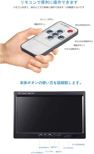 - ビデオシステム:NTSC/ PAL自動切替可能 800x480高解像度, TFT LCD液晶採用 - 働く温度:-10~50度 - ストレージ:-30~70度 - カーモニターカラー:ブラック - 消費電力:3W - 電源:DC 12V/24V パッケージを含む: 1×7"TFT液晶モニター 1×電源ケーブル